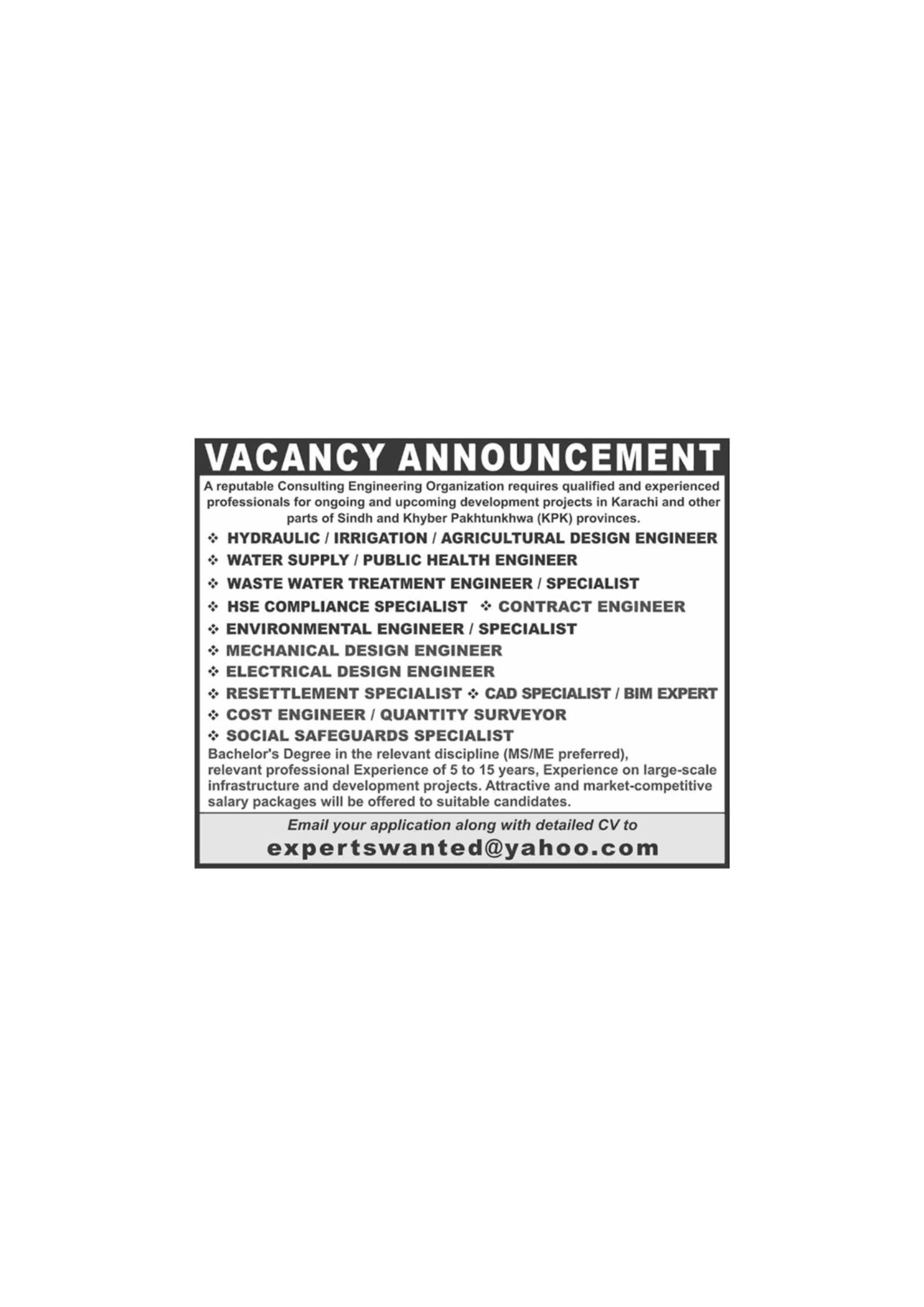 Consulting Engineering Organization Jobs in Pakistan Design Engineers & Others Latest