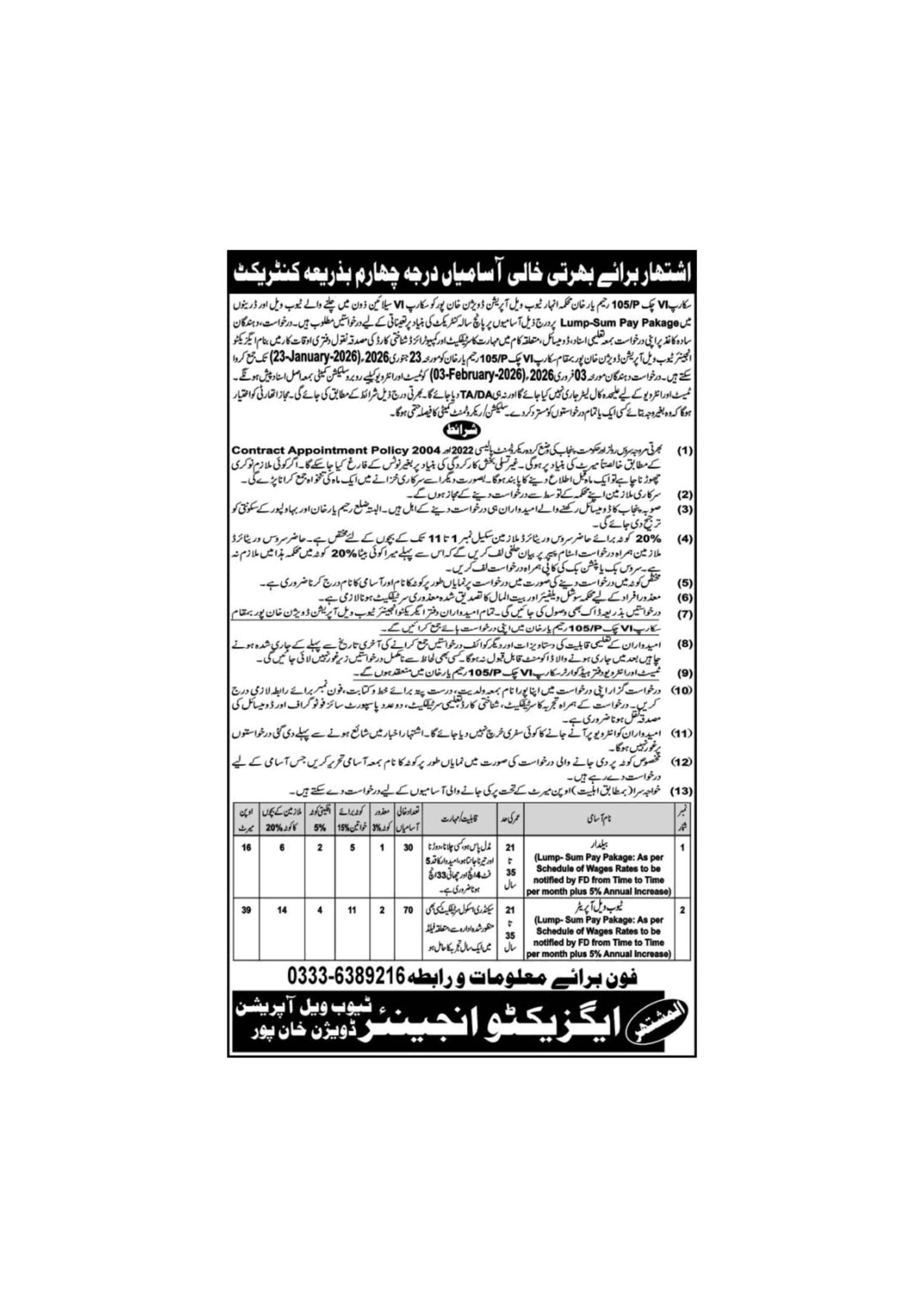 Tubewell Operator Jobs in Irrigation Department Khanpur 2026 Rahim Yar Khan Punjab