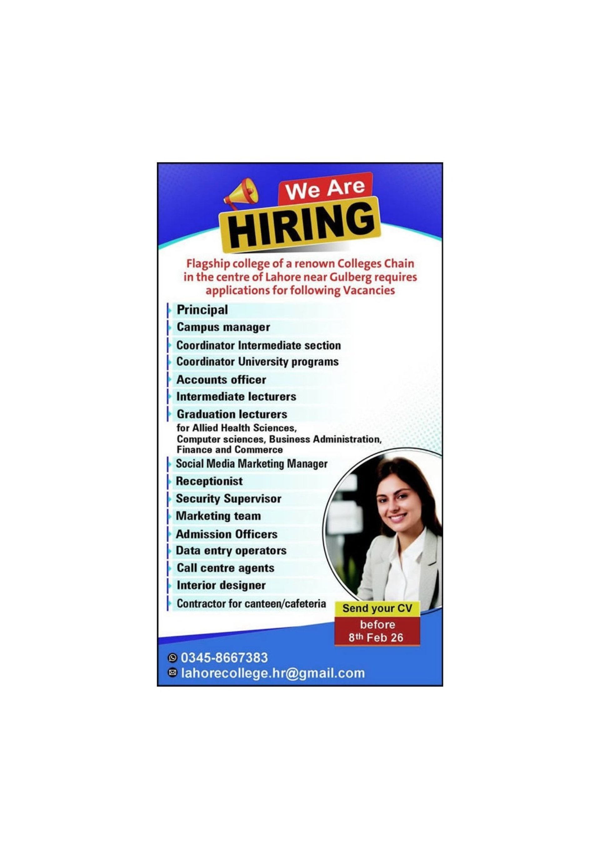 Lahore College Jobs 2026 February Lecturers, Data Entry Operators, Call Centre Agents & Others