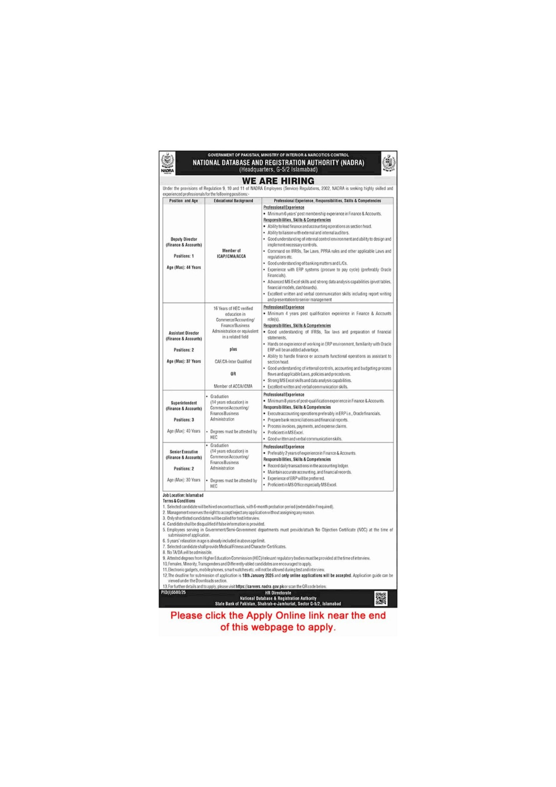 www.careers.nadra.gov.pk Apply Online