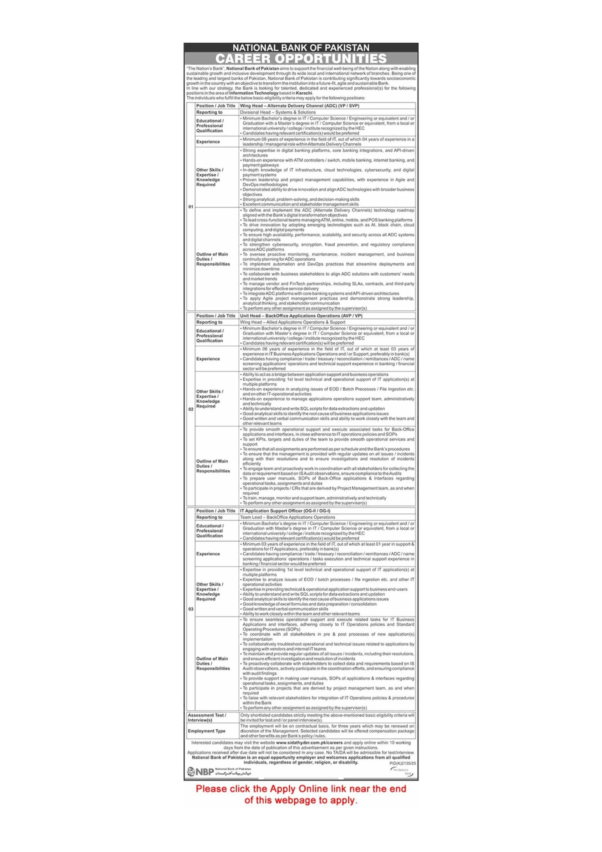 National Bank of Pakistan Jobs December 2025 Apply Online IT Application Support Officer & Others NBP Latest