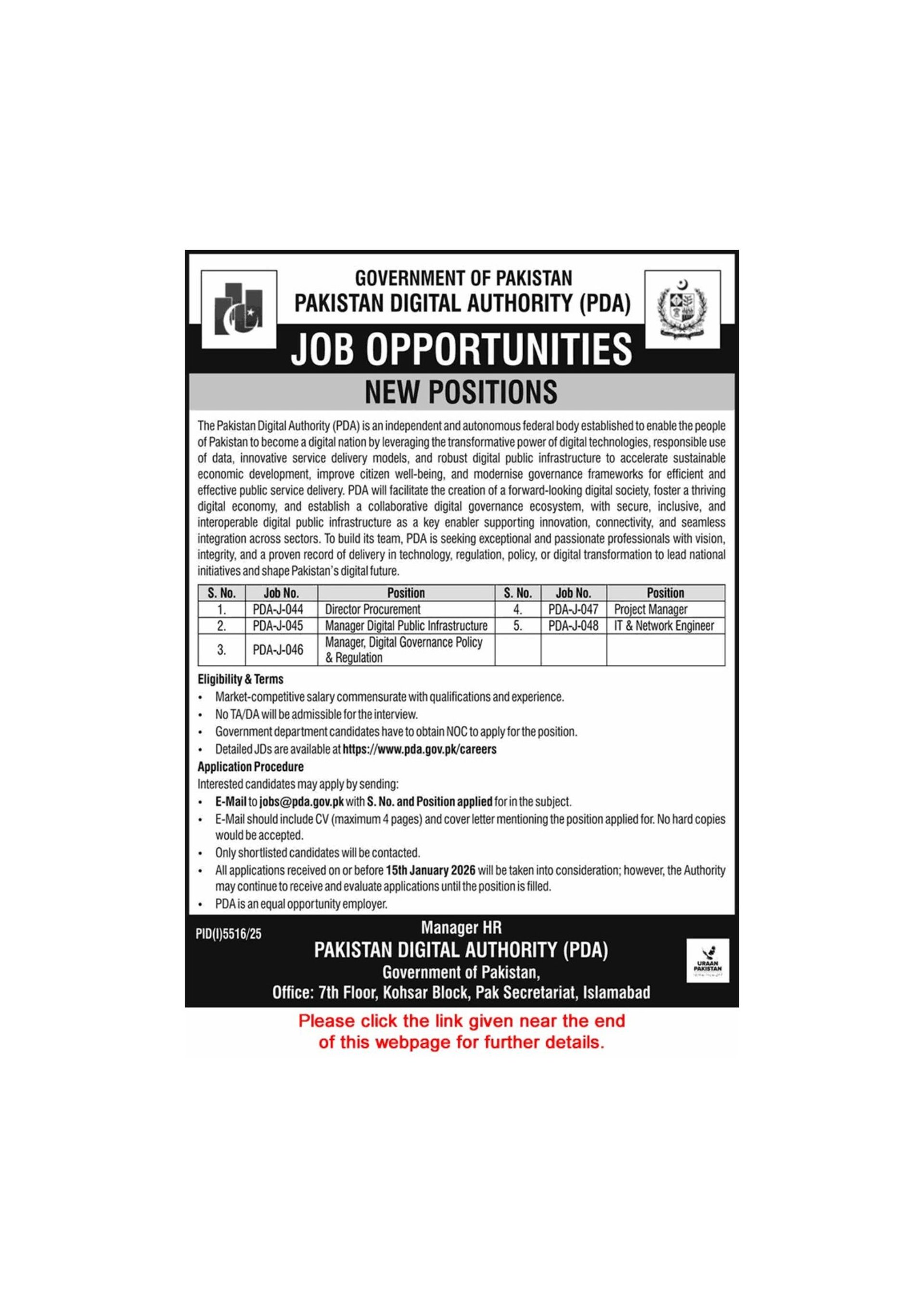 Pakistan Digital Authority Islamabad Jobs 2026 IT / Network Engineer, Project Manager & Others PDA Latest