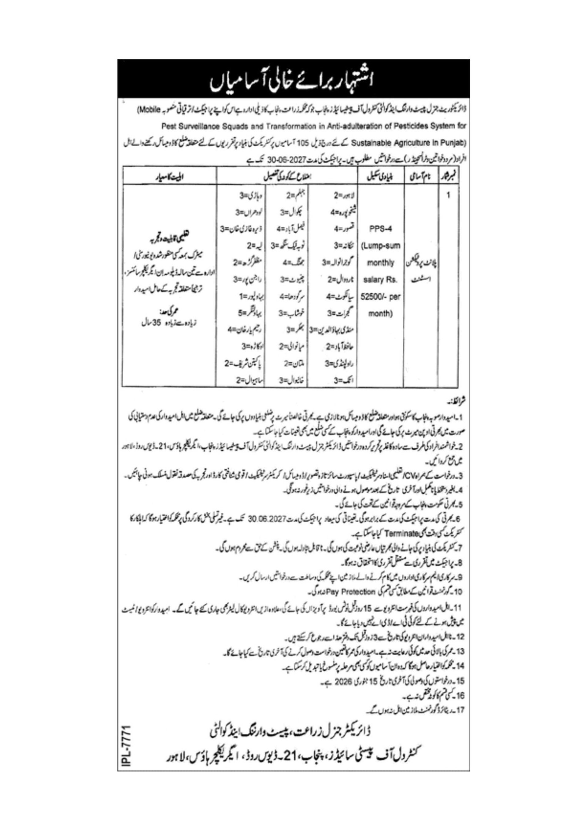 Pest Warning and Quality Control of Pesticides Punjab Jobs 2025 December for Plant Protection Assistants