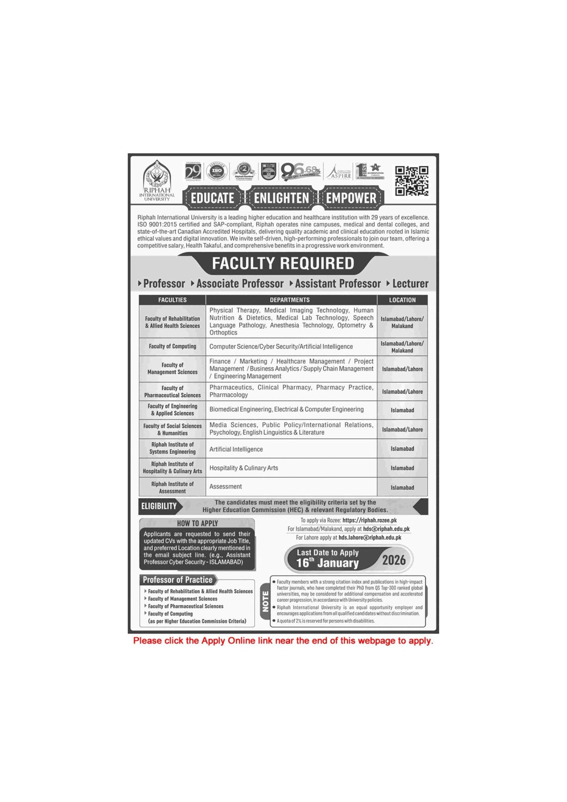 Riphah International University Jobs 2026 Apply Online Teaching Faculty RIU