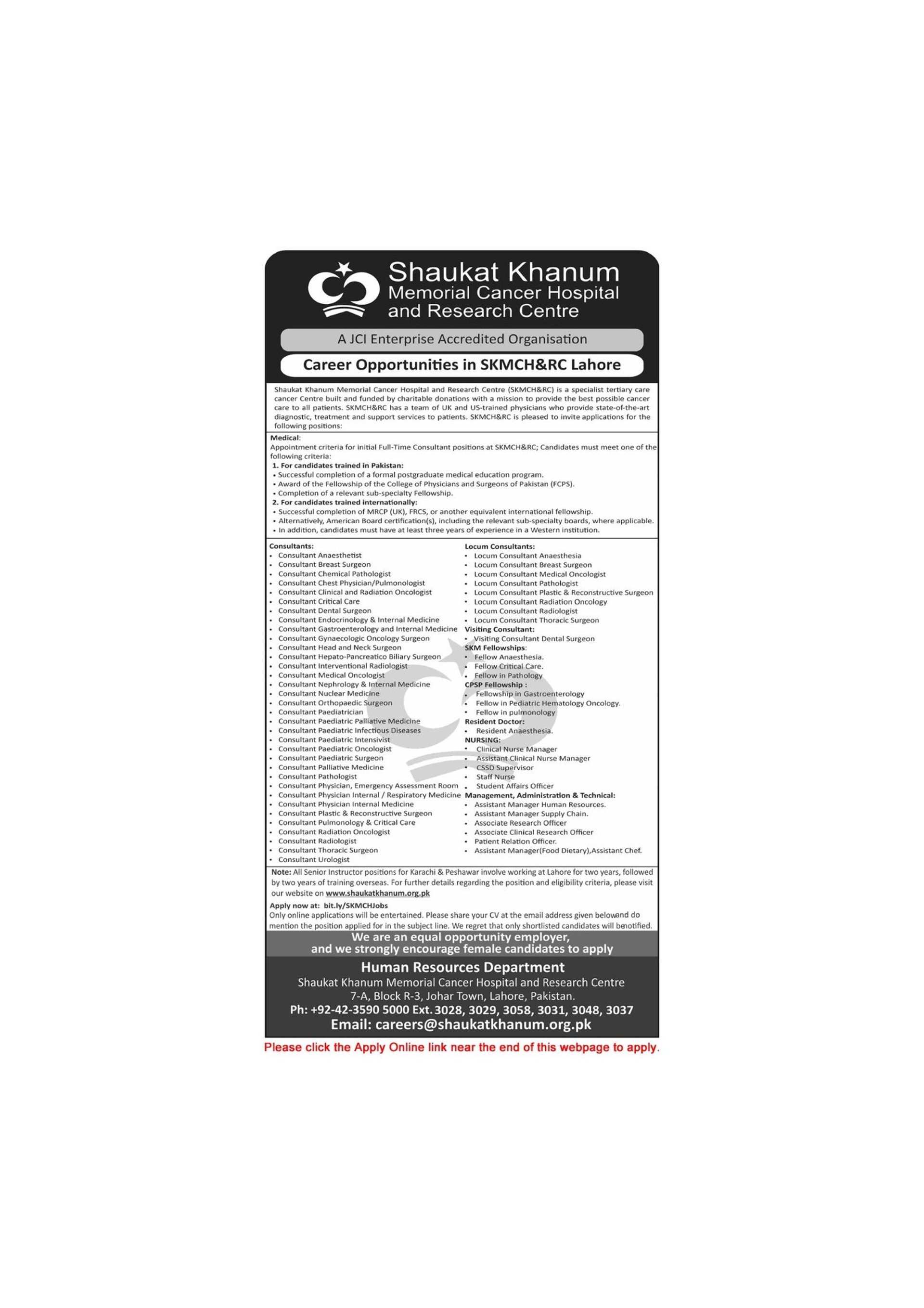 Shaukat Khanum Hospital Lahore Jobs 2026 Apply Online Medical Consultants, Nurses & Others SKMCH&RC