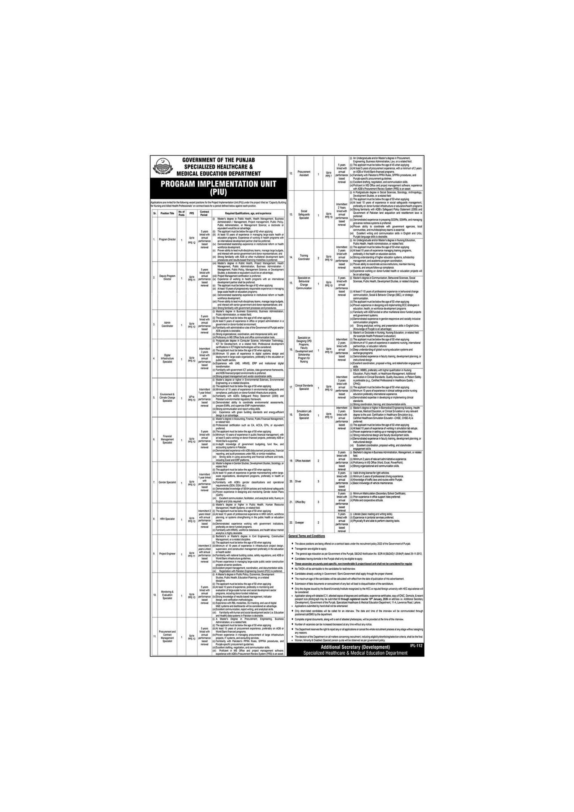 Specialized Healthcare and Medical Education Department Punjab Jobs 2026 Office Assistants, Drivers & Others Latest