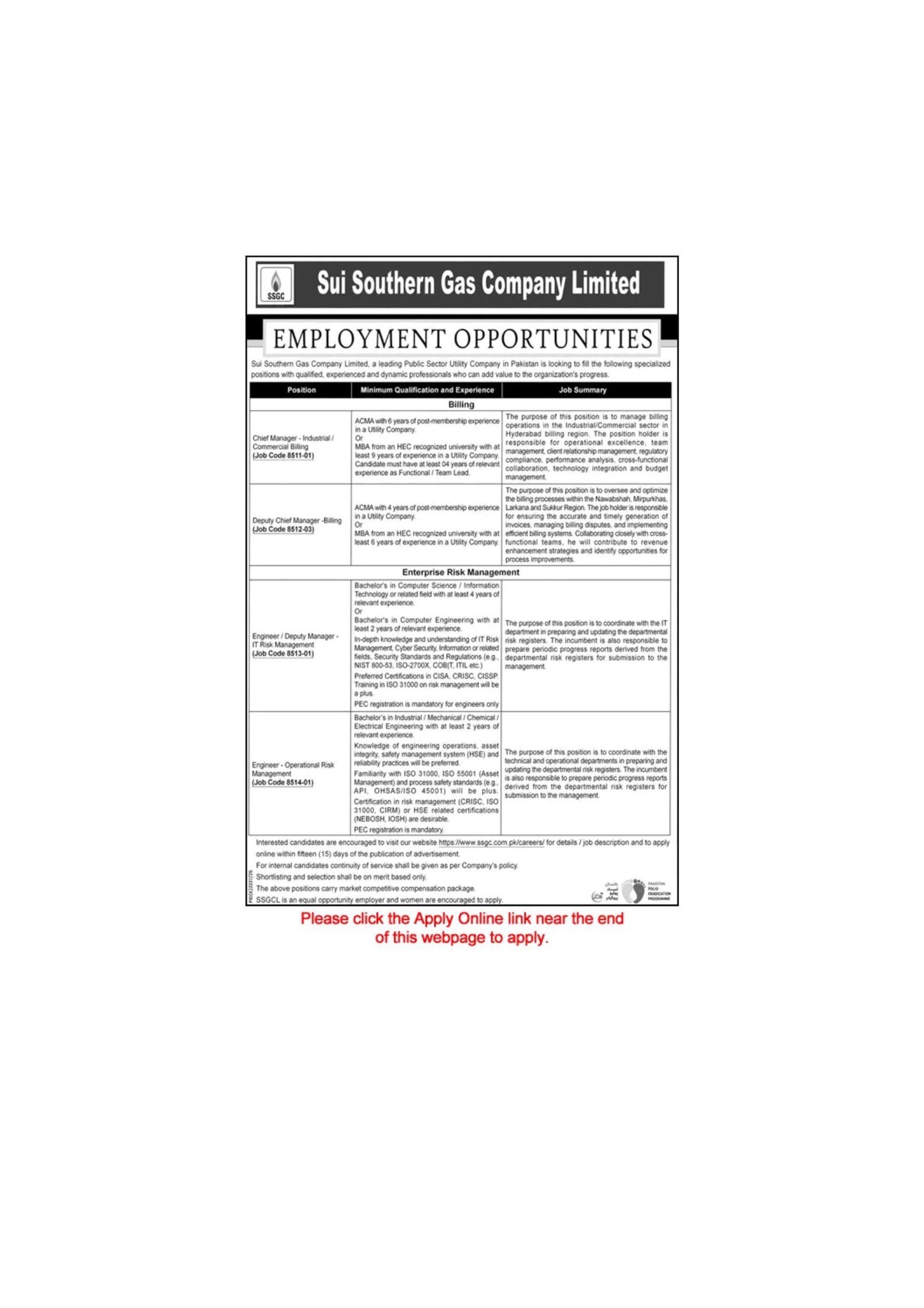 SSGC Jobs December 2025 / 2026 Apply Online Sui Southern Gas Company Limited