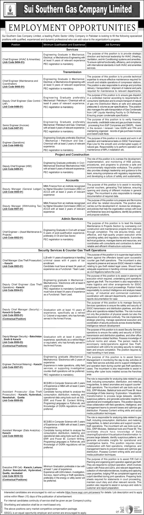 SSGC Jobs October December 2025 Apply Online Sui Southern Gas Company Limited