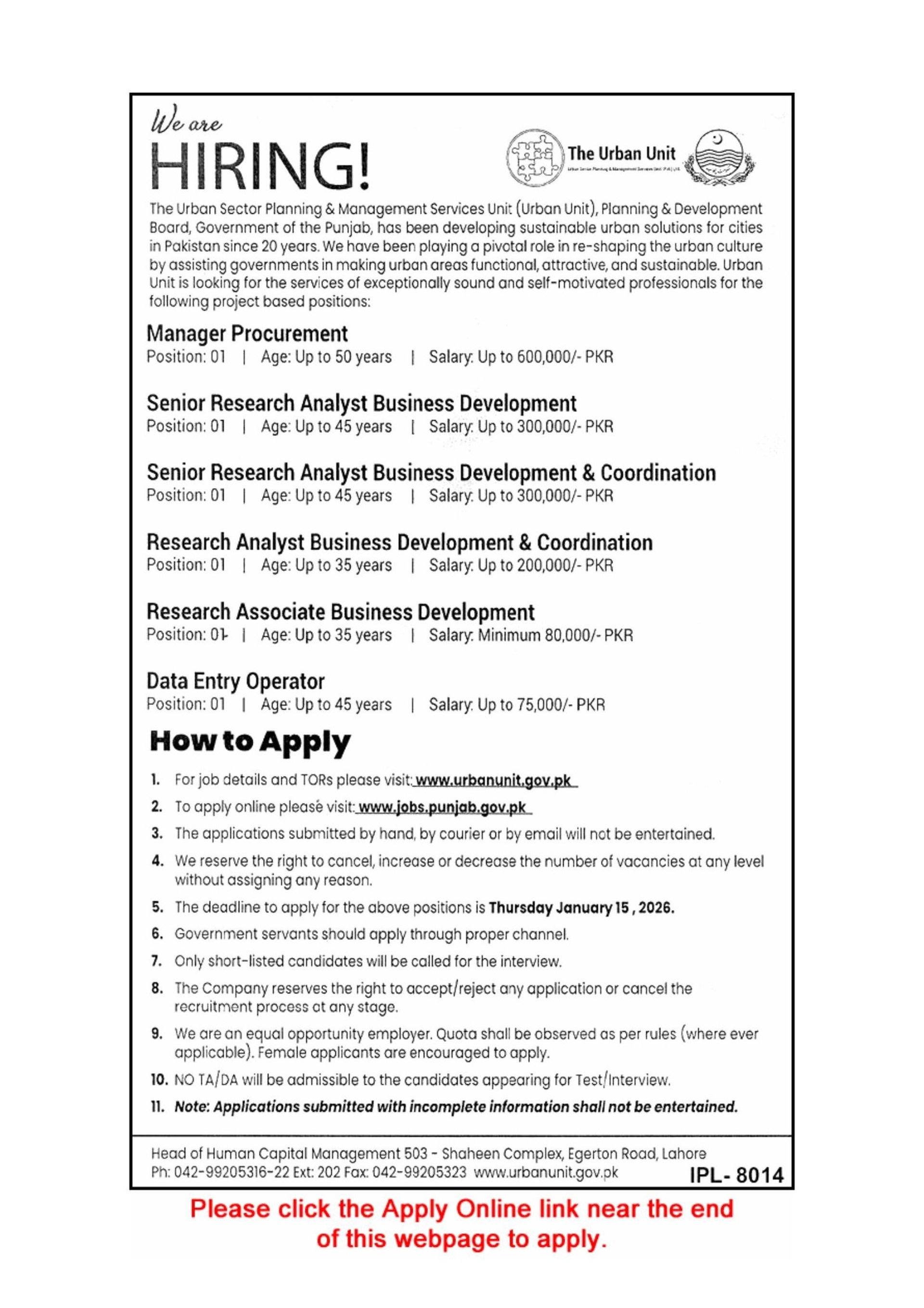 Research Analyst / Associate Jobs in The Urban Unit December 2025 / 2026 Punjab Pakistan