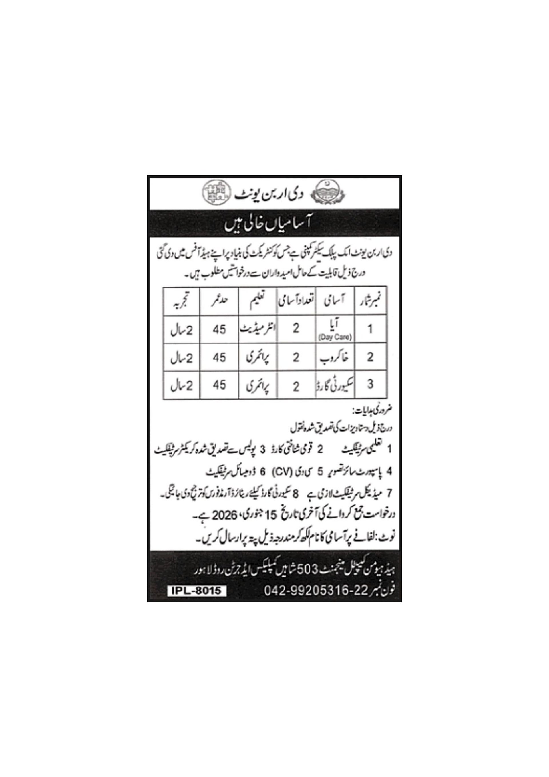The Urban Unit Lahore Jobs December 2025 / 2026 Security Guard, Khakroob & Aya Latest