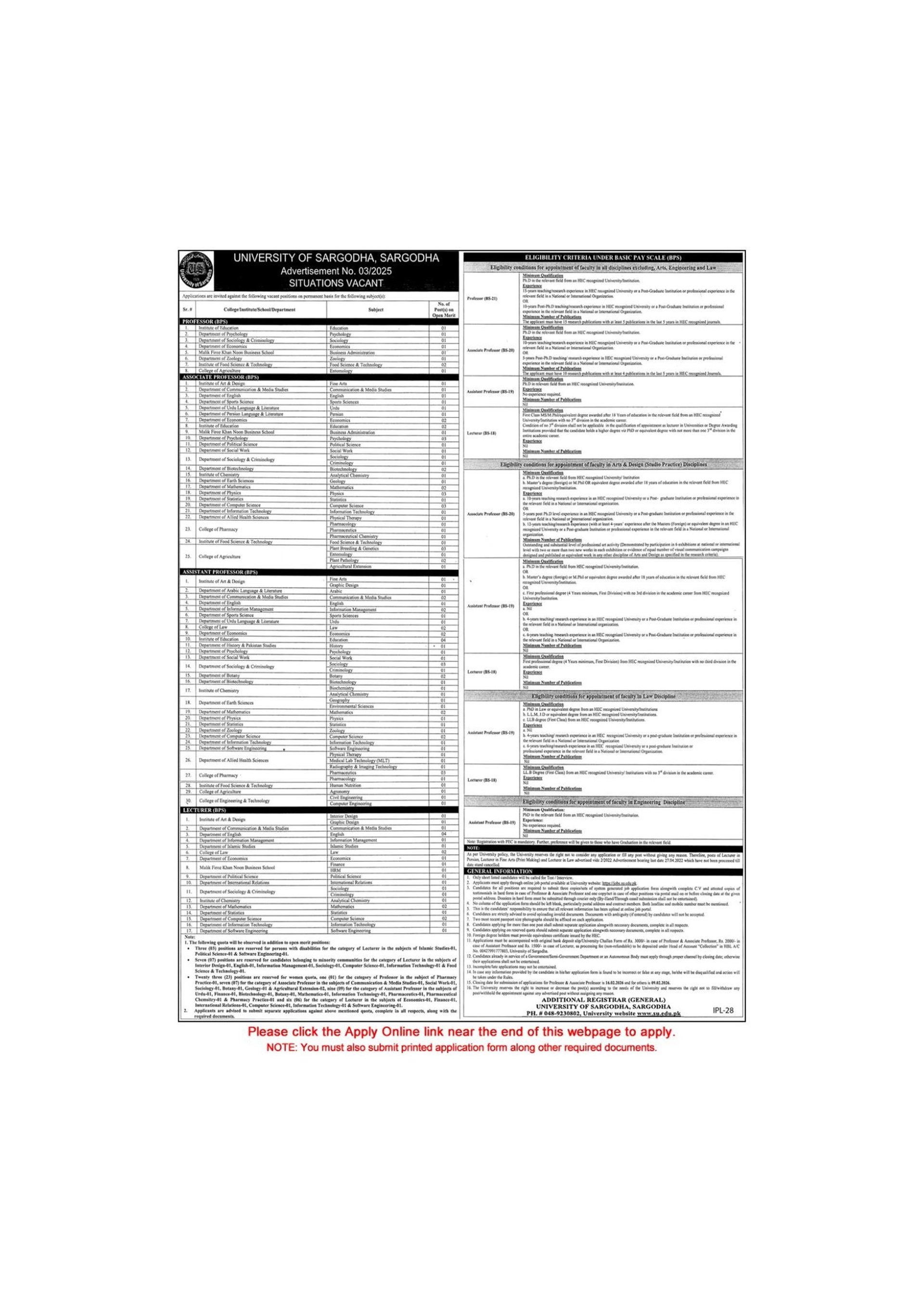University of Sargodha Jobs 2026 Apply Online Teaching Faculty UOS